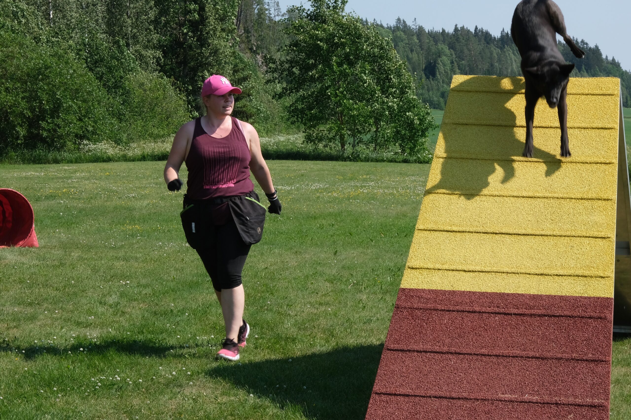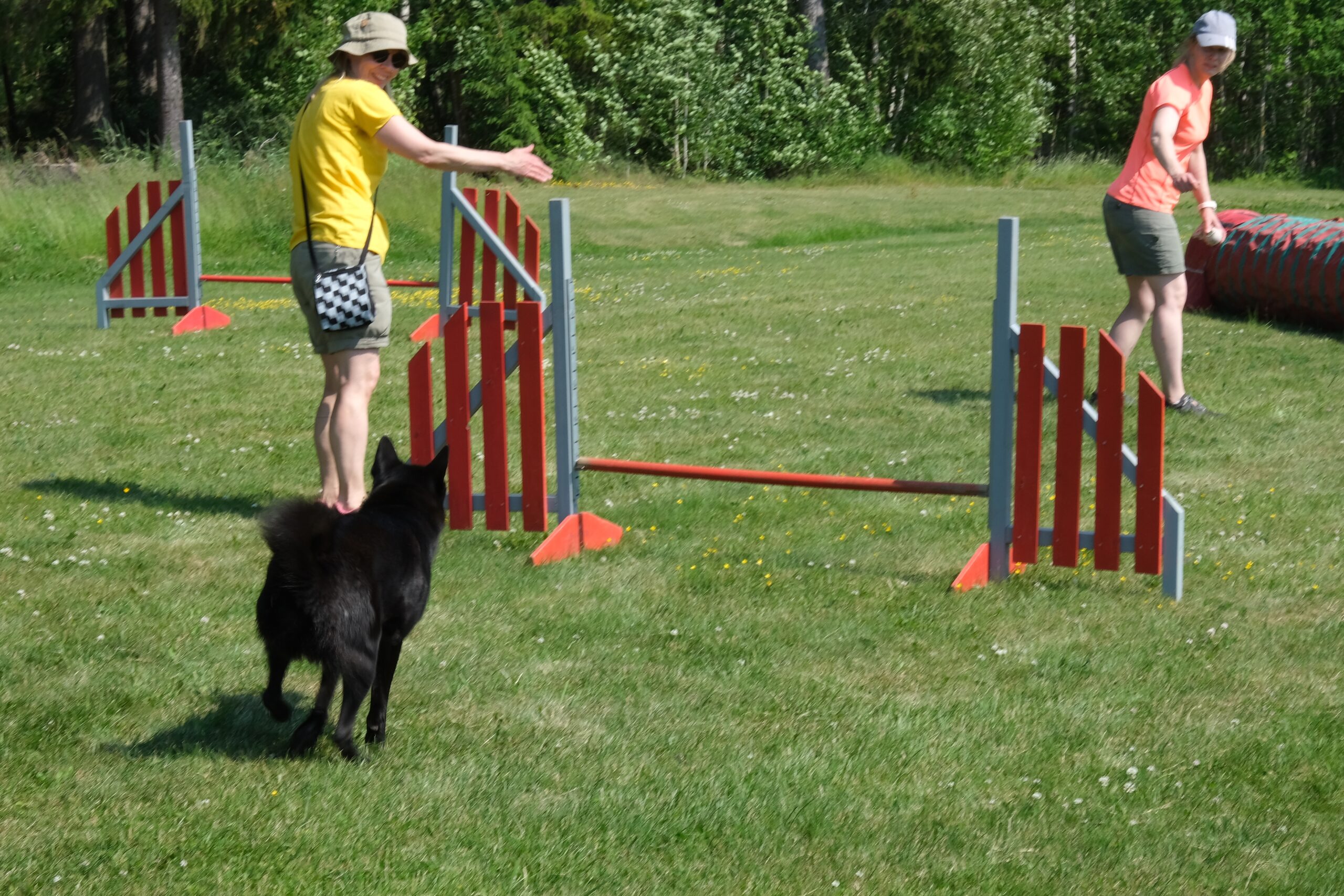 Kokouksen jälkeen Heidi Ikonen johdatteli kiinnostuneita agilityn saloihin ja sitä pääsi myös kokeilemaan pienellä harjoitusradalla. Vaikka sää oli helteinen, muutamat innokkaat jaksoivat koettaa. Agilityä voi harrastaa monella tavalla ja se on mukavaa aktivoivaa liikuntaa niin koiralle, kuin sitä ohjaavalle ihmisellekin.